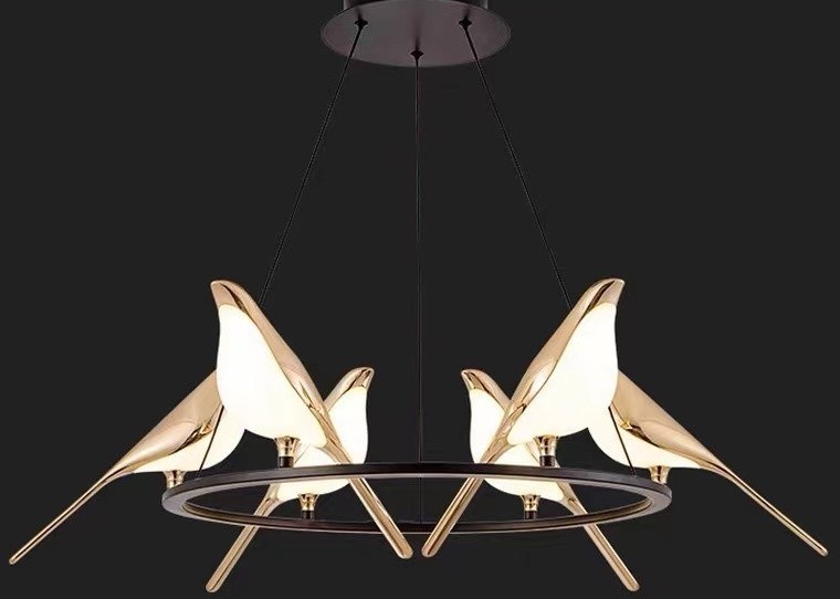 Sea Shipping Gold Round Bird Mounted LED Chandelier