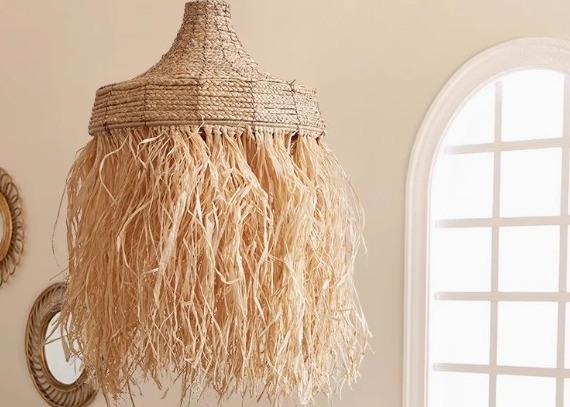 Rattan Chandelier Hotel Restaurant Straw Hat Lamp for Bedroom